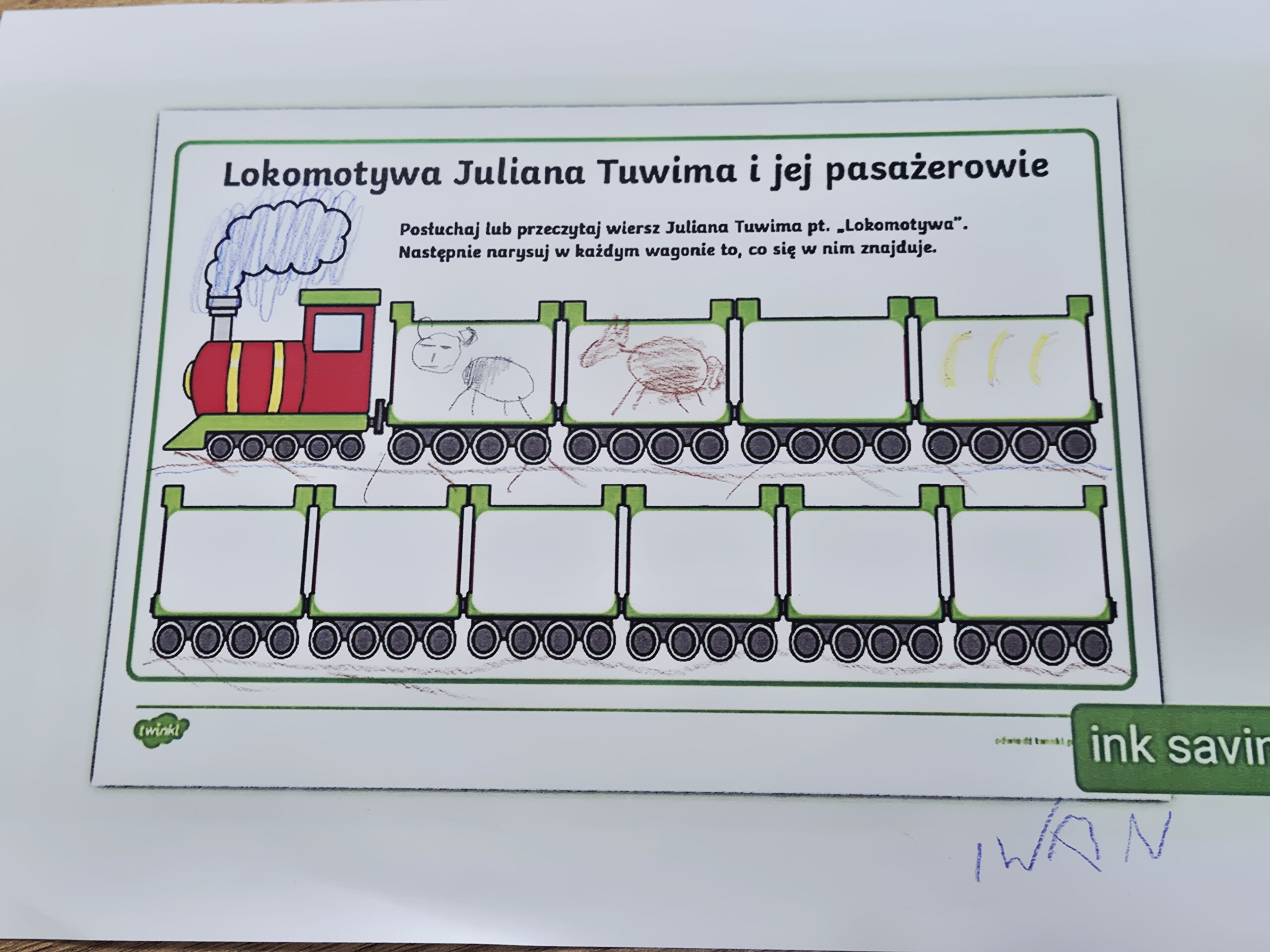 Z okazji 131 rocznicy urodzin Juliana Tuwima w Czytelni Pruskovianów odbyły się zajęcia dla dzieci w wieku 5-6 lat, na którym pokrótce przedstawiliśmy autora oraz jego twórczość. Opowiedzieliśmy o historii kolei w Pruszkowie, a następnie wspólnie przeczytaliśmy wiersz ,,Lokomotywa”. Na zakończenie przeprowadziliśmy mały quiz na którym dzieci miały namalować, co było przewożone w poszczególnych wagonach. W ramach nagrody dzieci otrzymały małe prezenty (magnesy i zakładki do książek).