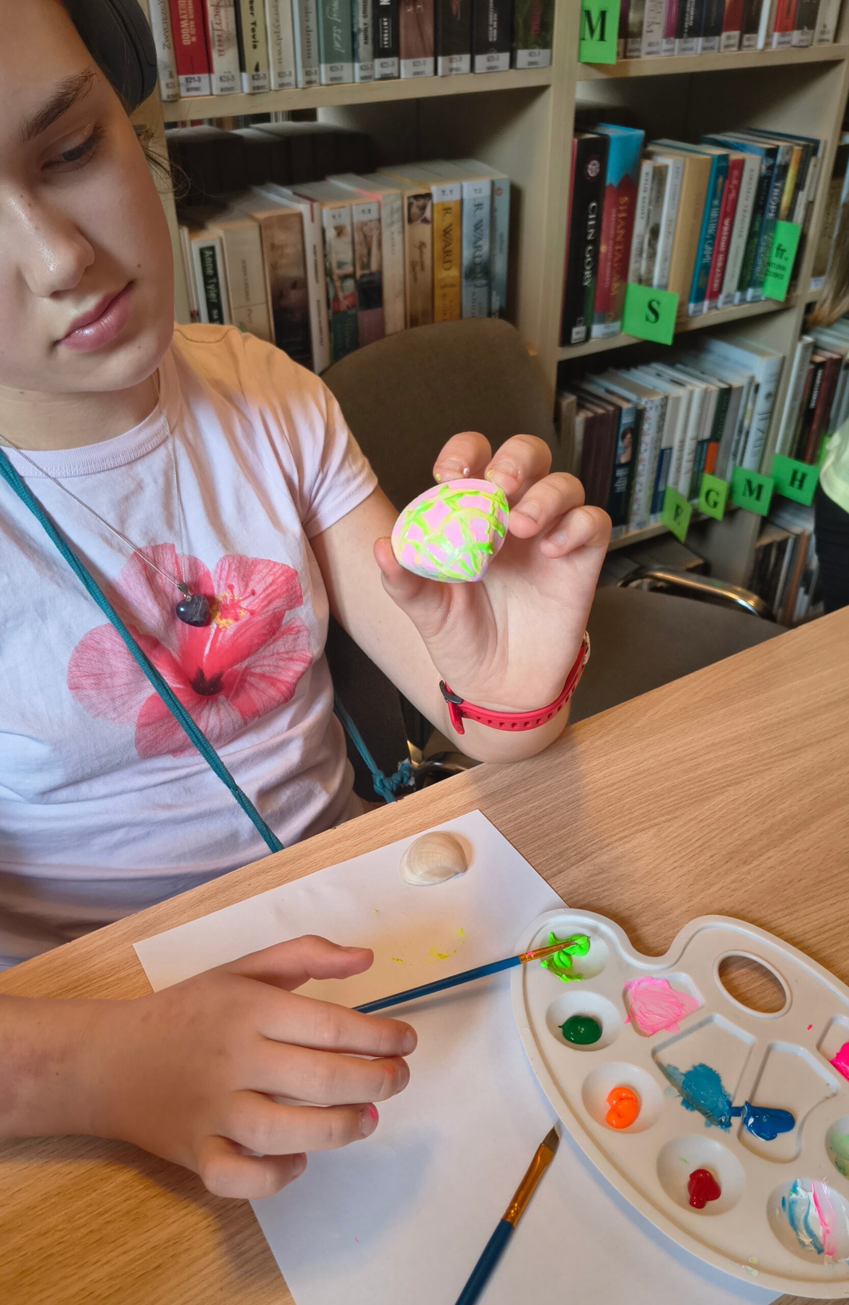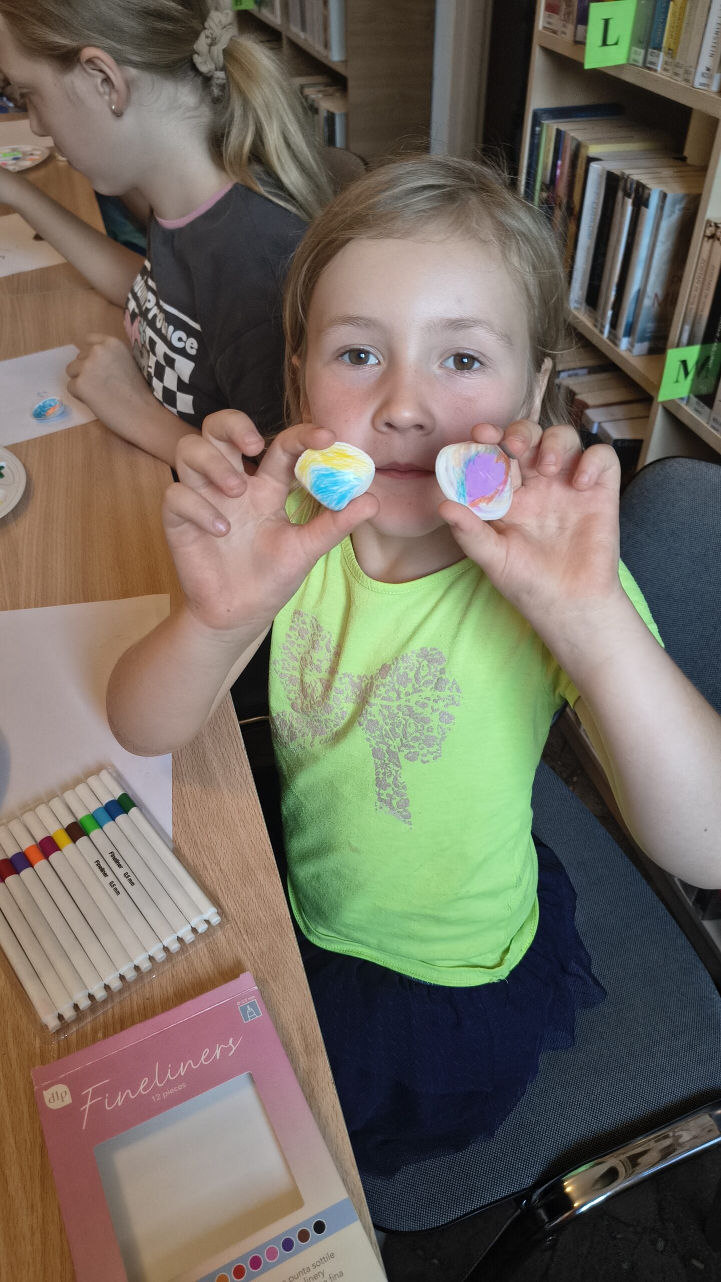 4 września 2025 roku w Filii nr 3 odbyły się warsztaty dla dzieci „Wakacyjny wspomnień czar”, podczas których zwykłe muszelki przemieniły się w niezwykłe płótna pełne barw i emocji. Pod pędzlami uczestników powstawały fantazyjne wzory mieniące się kolorami niczym letnie zachody słońca nad morzem i w górach. Każda muszelka stała się małym dziełem sztuki – niepowtarzalną opowieścią o wakacyjnych przygodach i pięknie natury, uchwyconym w akrylowych barwach wspomnień.