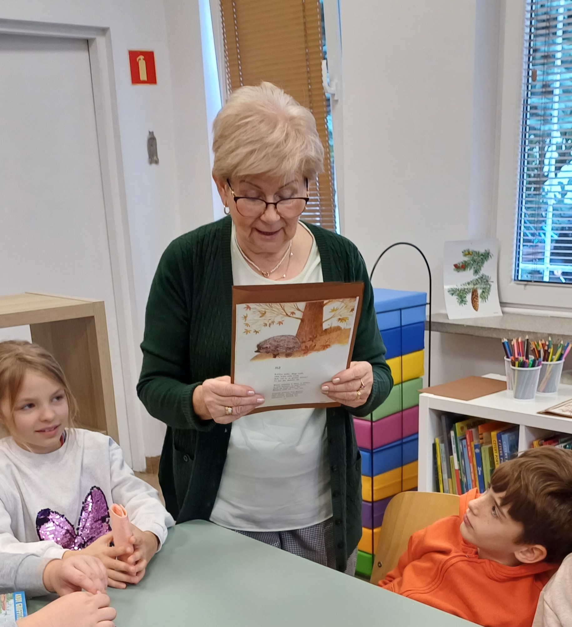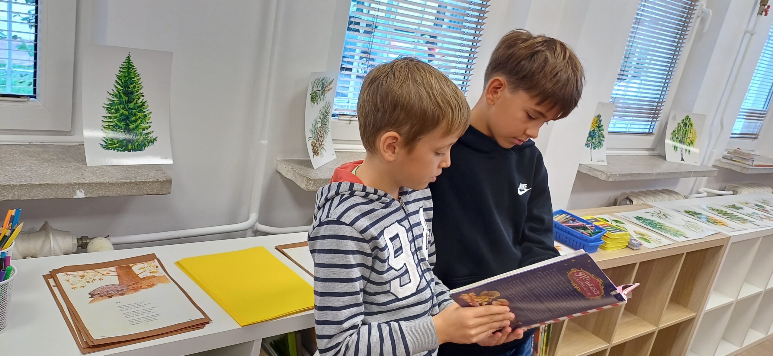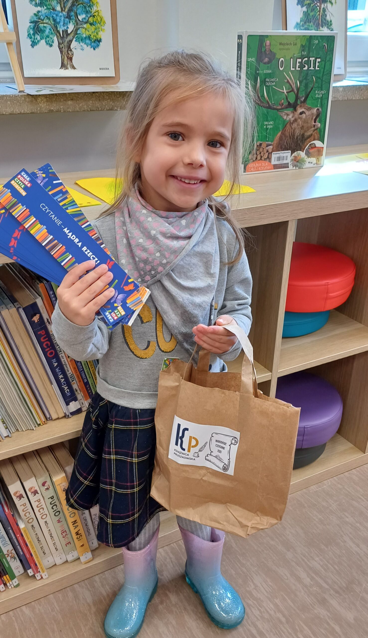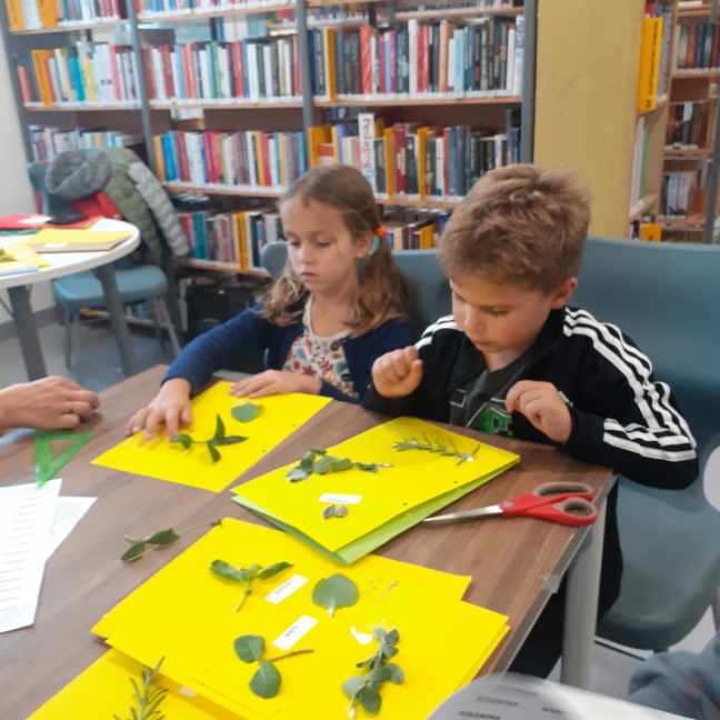 Z okazji Dnia Zwierząt i Dnia Drzewa dzieci z Przedszkola Miejskiego nr 12 obejrzały teatrzyk kamischibai pt. „Powrót do domu” – opowiadający historię uprowadzonych małych lwiątek. Następnie podczas spotkania z poezją poznały wiersze o drzewach – J. Brzechwy, M. Strzałkowskiej i H. Zdzitowieckiej. A, po ich wysłuchaniu tworzyły prace plastyczne z wykorzystaniem liści. Wydarzenie uświetniła wystawka edukacyjna – „Świat wokół nas – Drzewa”. Dziękujemy za czas spędzony w naszej bibliotece. Do zobaczenia!
