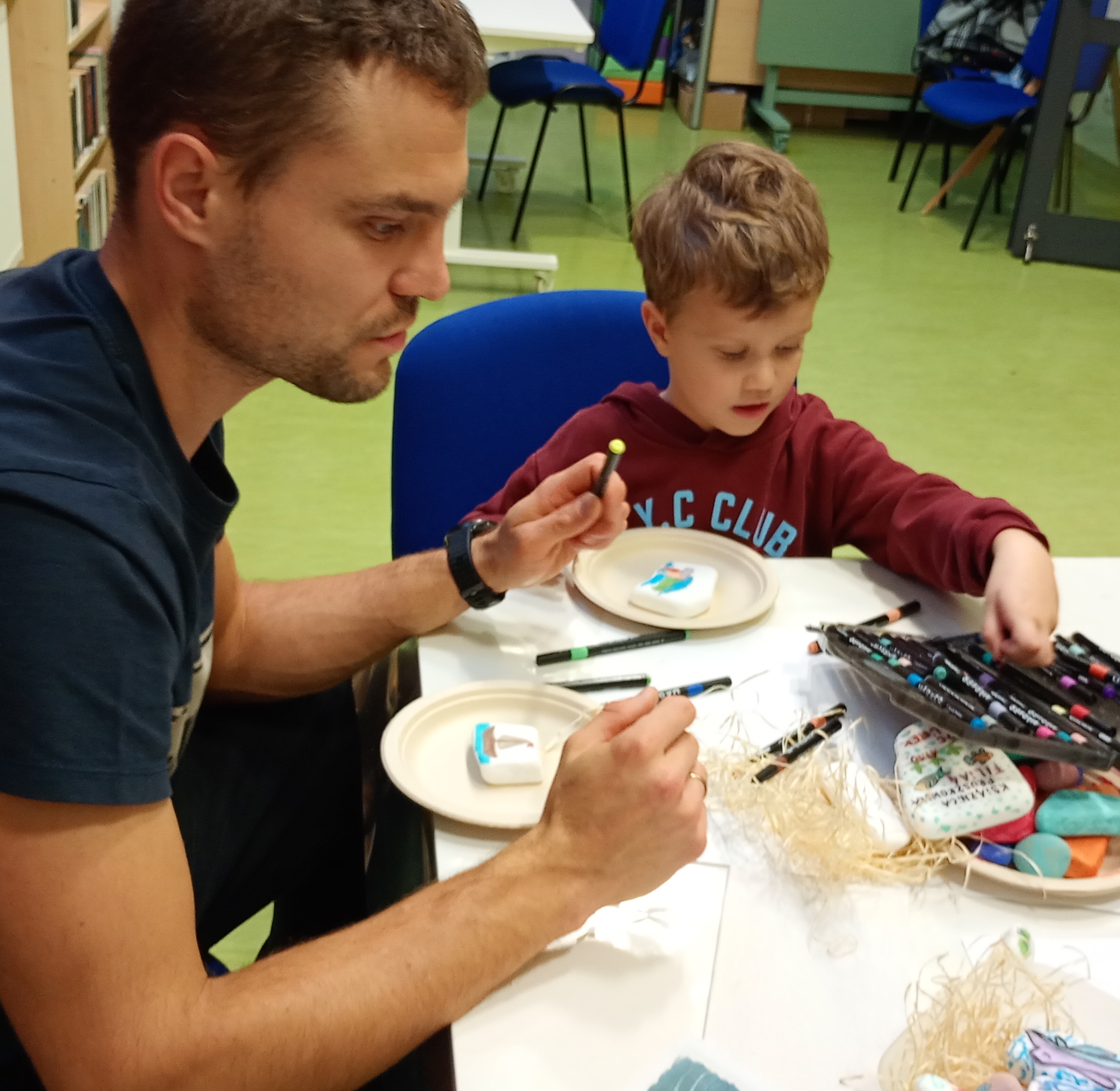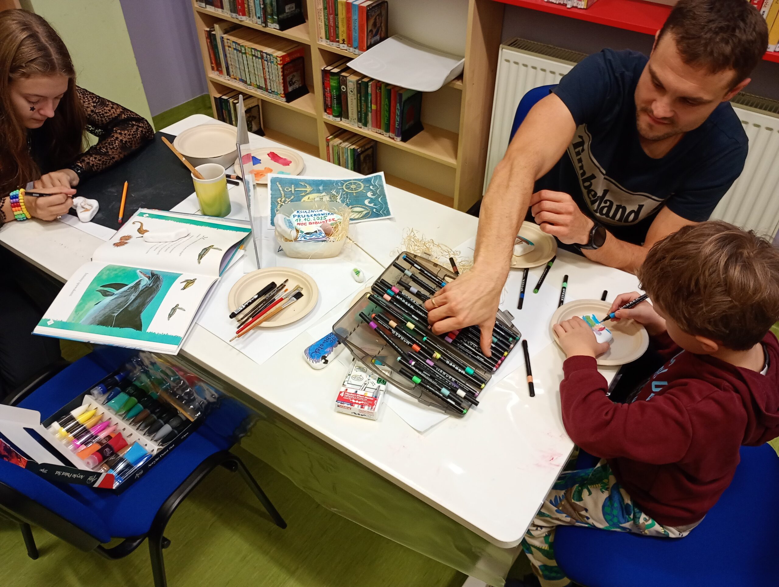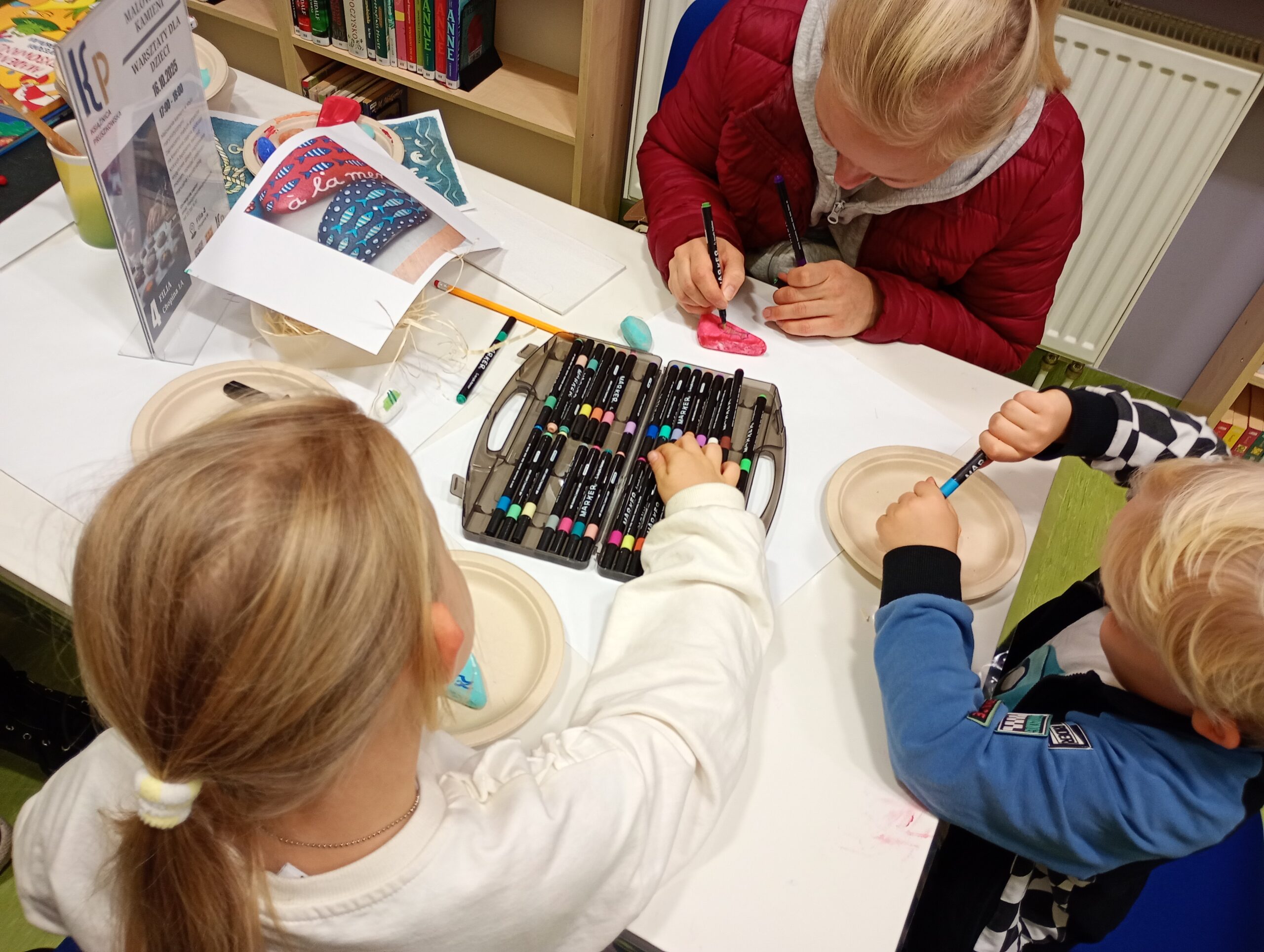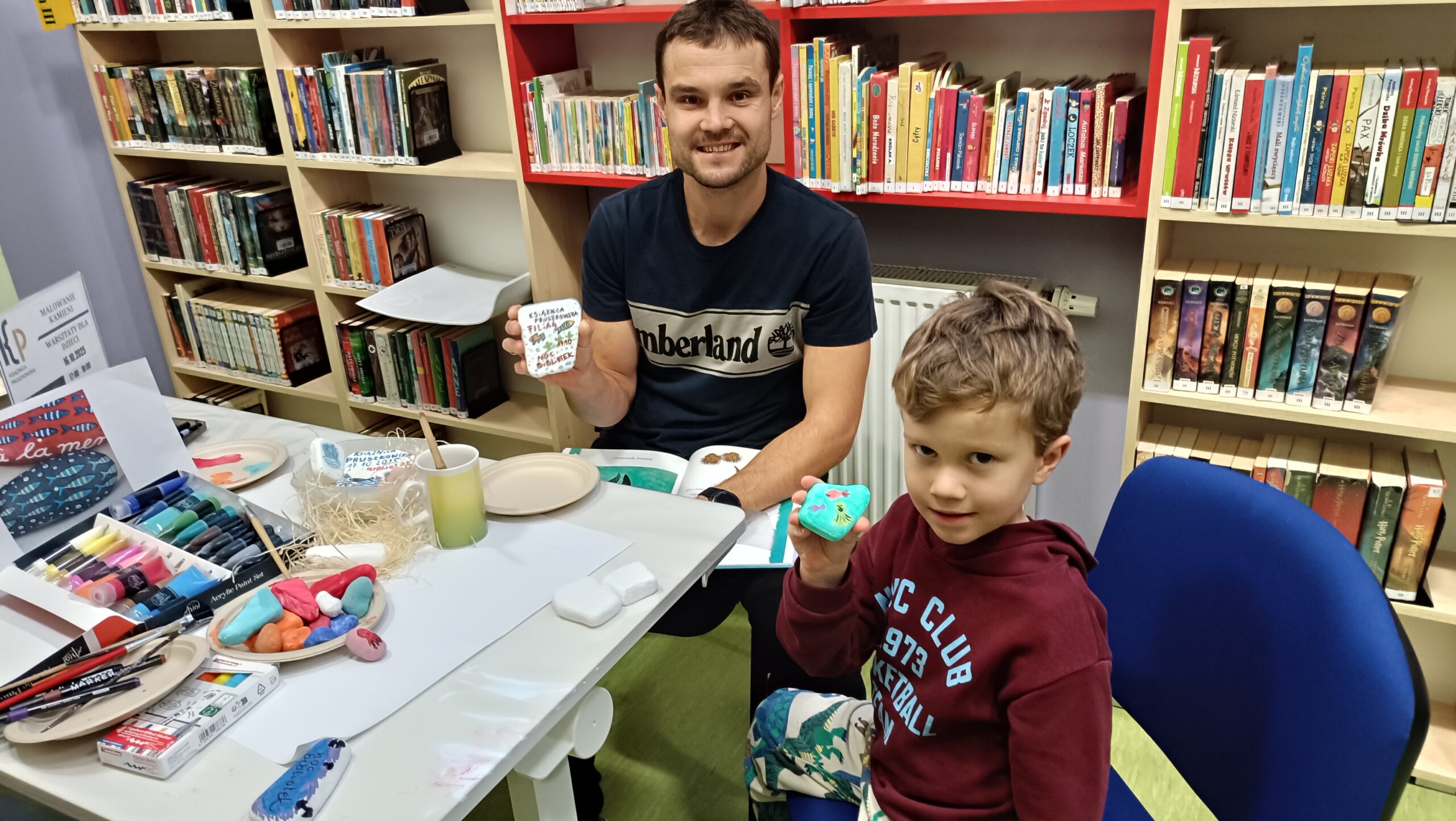Uczestnicy przeglądali książki o tematyce morskiej, rozmawiali o swoich zainteresowaniach i pięknie zdobili kamienie. Dziękujemy za miło spędzony czas, mamy nadzieję na ponowne spotkanie.