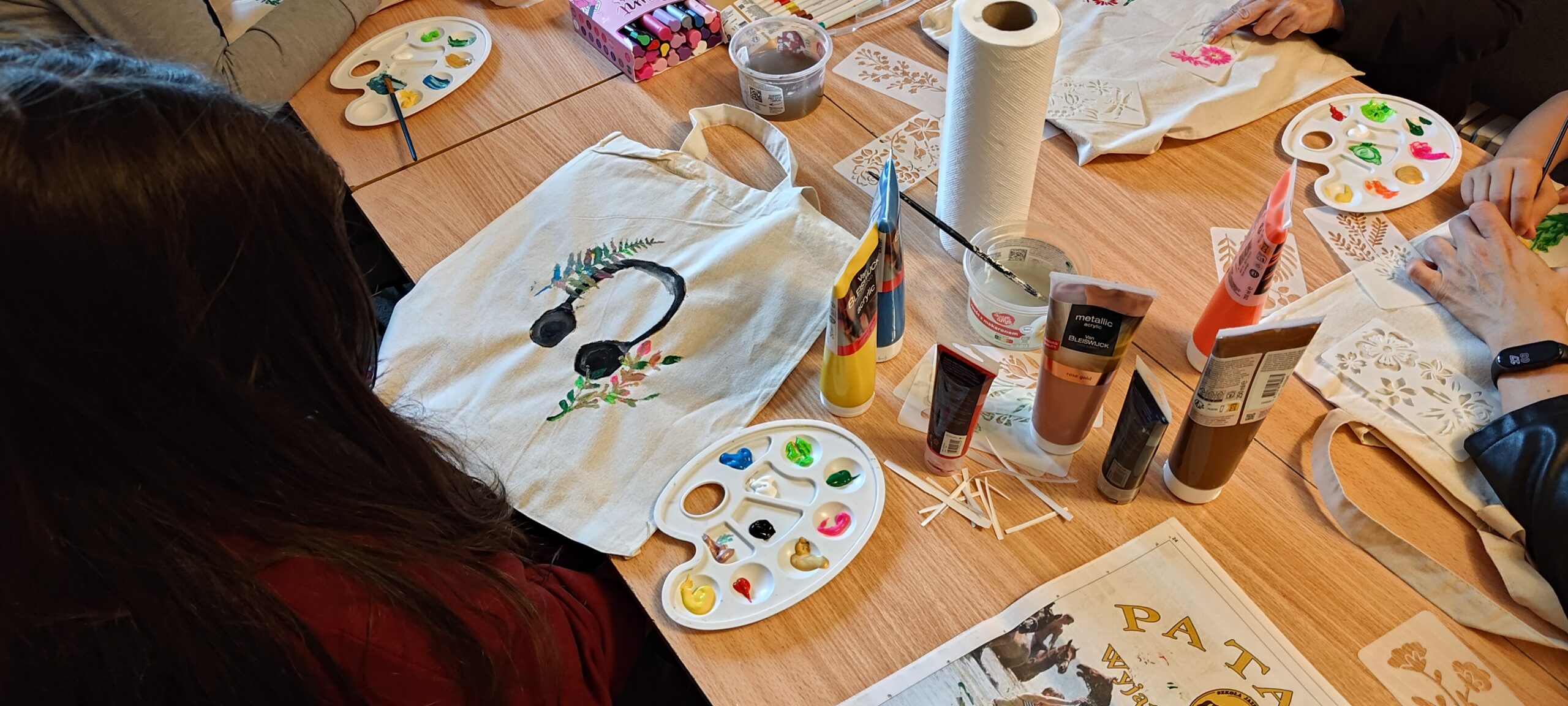 Na warsztatach z malowania „Torba pełna jesieni” ozdabialiśmy materiałowe torby najróżniejszymi wzorami roślinnymi. Nabrały barw związanych z tą malowniczą porą roku. Efekt zobaczcie sami!
