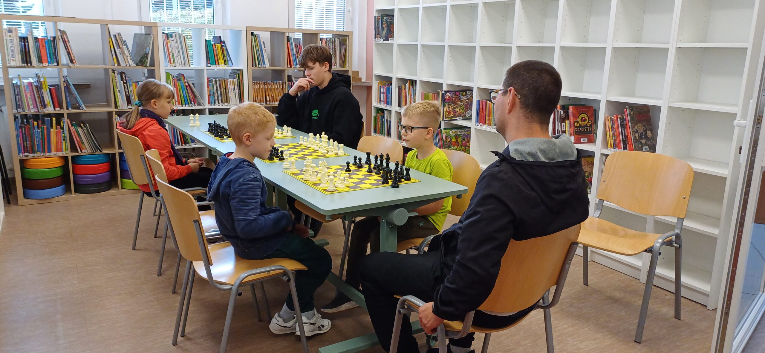 Zgodnie z zapowiedzią w Filii nr 7 odbyły się pierwsze zajęcia z cyklu: „Mały szachista bibliotece”. Dziękujemy za udział i do zobaczenia na kolejnych spotkaniach.