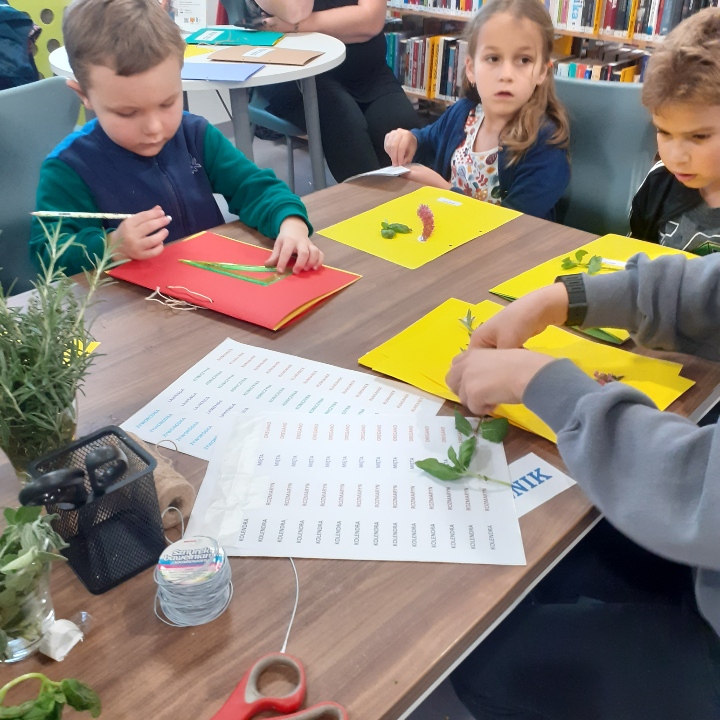 Otaczające nas rośliny zielne, bardziej lub mniej znane, to zarówno pospolite chwasty jak i przyjemne w smaku rośliny jadalne. Od wieków zbierano zioła rosnące dziko na łąkach, pastwiskach i w lasach, ale także uprawiano je w ogrodach. Wykorzystywane w medycynie ludowej, dzięki swoim właściwościom leczniczym, w kuchni, poprzez swoje niepowtarzalne walory smakowe. Na dzisiejszych warsztatach w Filii nr 9, uczestnicy poznawali nazwy ziół, także łacińskie. Dowiedzieli się jakie posiadają walory i właściwości i wykonali bardzo oryginalne zielniki. Do ich wykonania wykorzystano: Żyworódkę/Kalanchoe pinatę/, Kolendrę siewną/Coriandrum sativum/, Rozmaryn /Rozmarinus officinalis/, Miętę /Mentha/, Oregano/Origanum vulgare/, Tymianek/Thymus Vulgaris/, Bazylię /Ocimum basilicum/, Liść laurowy /Laurus nobilis/, Wrzosiec/Erica/. Dziękujemy i zapraszamy do naszych filii.