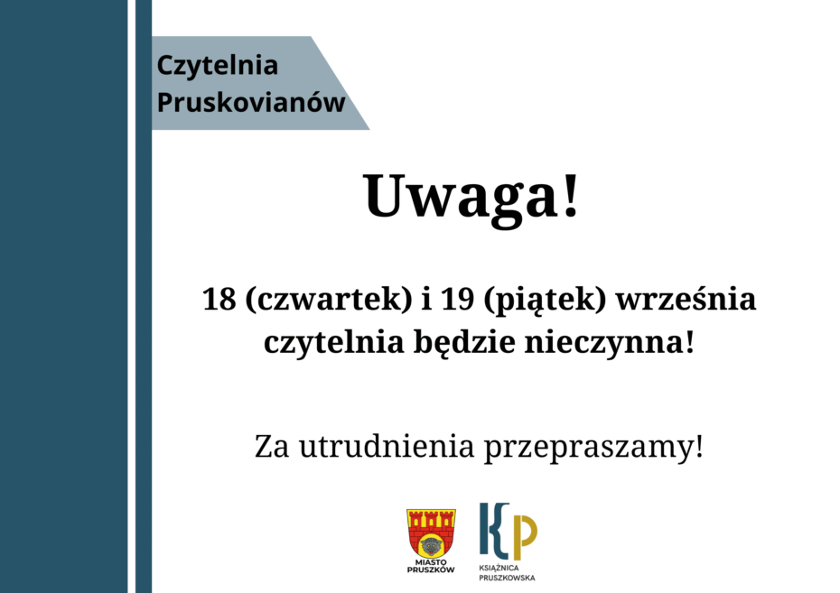 18 (czwartek) i 19 (piątek) września czytelnia będzie nieczynna!